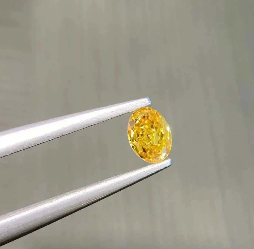 Яркий оранжевато-желтый бриллиант 0.34 карата Супер желтый бриллиант с ярким янтарным цветом. Камень имеет очень хорошую полировку и хорошую симметрию. Сертификат GIA и МГУ