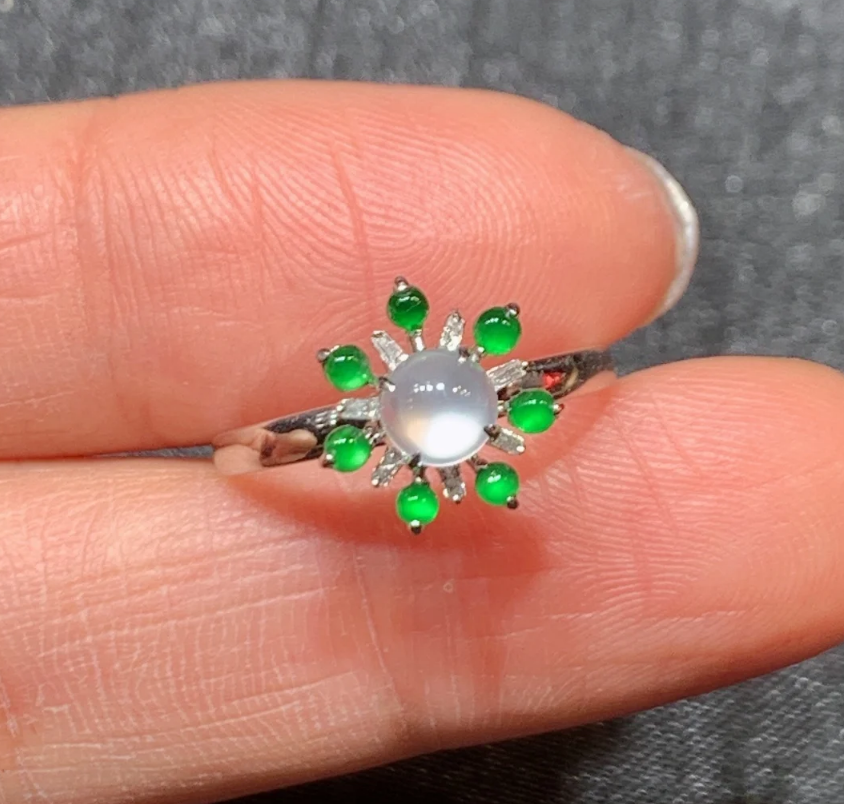 Нефритовое кольцо с жадеитом ИмпериалОсновные характеристики Тип изделия: элегантное кольцо с натуральным жадеитом Материалы и характеристики Драгоценный камень: