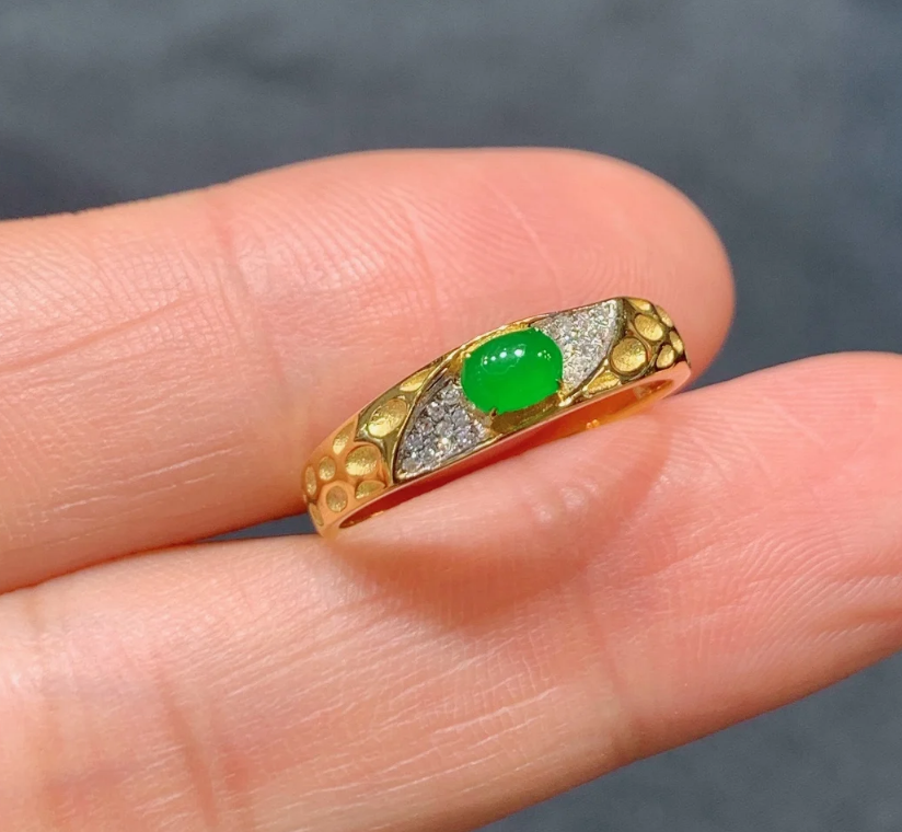 Золотое кольцо с жадеитом Империал Основные характеристики Тип изделия: изысканное ювелирное кольцо премиум-класса Материалы и характеристики Драгоценный камень: